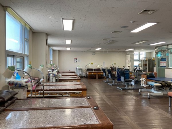물리치료실을 소개할께요 페이지 정보 작성자 사회복지사 작성일21-06-09 15:22 이전글 다음글 목록 본문 전망좋고 채광과 환기가 잘되는 쾌적한9층에 위치한 물리치료실이예요. 요양병원 환우분들의 일상 중 가장 즐겨찾는 곳이기도 하지요. 물리치료실 이용은 각 병동별 스케줄에 따라 이용하고 계시며 온돌침대, 경사침대,전신마사지침대,어깨회전운동기구, 자기장치료기기등 다양한 의료기기가 갖추어져 있는데 그중 코끼리자전거는 가장 인기가 많답니다. 이전글 다음글 목록
