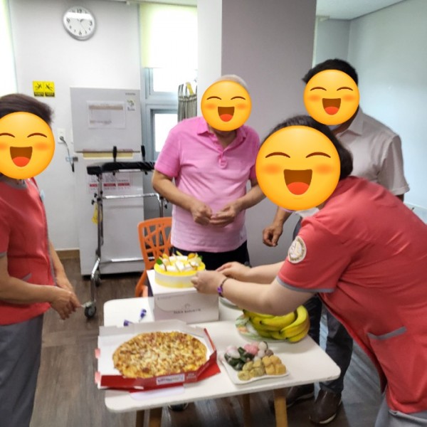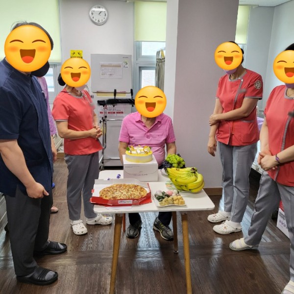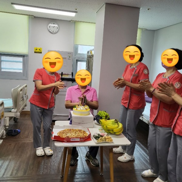 저희 병원에 장기입원 중이셨던 어르신께서 퇴원 후 집으로 돌아가신다는 기쁜소식에 그동안 진료를 해주신 진료원장님 그리고 병동 간호과 선생님들, 행정원장님께서 퇴원 축하를 위해 모였어요. 오랫동안 계셨던 병실에서 퇴원축하쏭을 불러 드렸어요. 집으로 가는게 좋지만 떠나러니 서운하시다는 어르신 퇴원 후 산책도 더 많이 하시고 가족들 관심 속에서 건강하게 잘 지내시길 바랍니다.